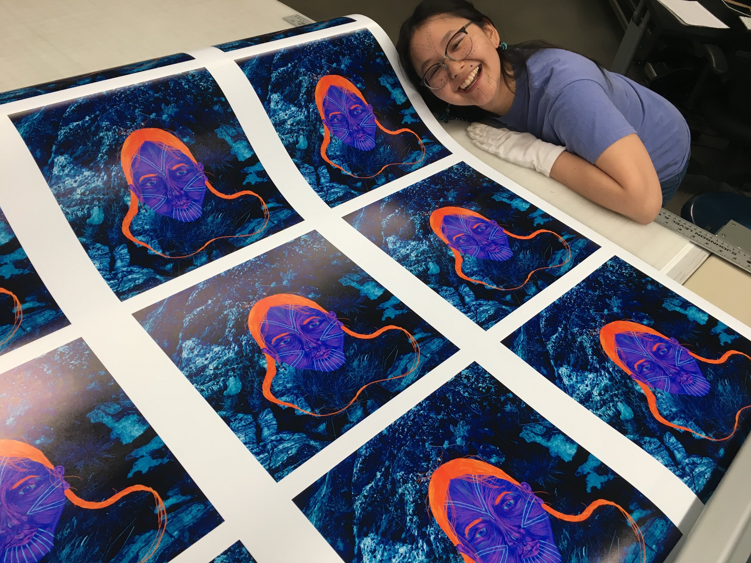 asinnajaq with a print run. 2018. Photo by Dayna Danger