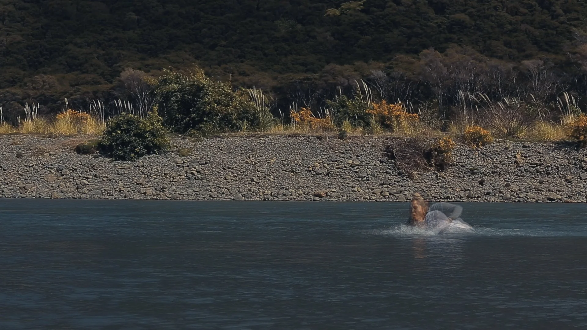river piece (raukokore edition) is a one minute performance video. filmed in Waihau Bay, Aotearoa. It was commissioned by aumaaggiivik in 2020.